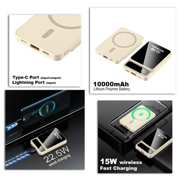 akvaari 10000 mAh Wireless Power Bank 15w Wireless, 25W Wired with Lithium Polymer Battery (Metal-look-digital)-Baige